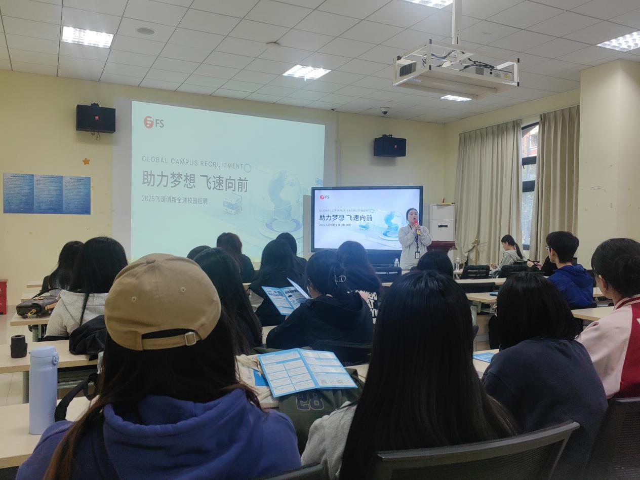 座谈结束上海区域人力行政负责人在外院129会议室召开了飞速创新招聘宣讲会,2021级和2022级德语专业学生参会。鲁梦莹讲解了本次招聘的岗位需求、薪酬组成、员工福利、晋升渠道等内容,徐思淇向同学们分享了面试工作经验。宣讲会结束后部分毕业生在现场直接进行了实习面试,促进了学生与单位之间的交流,为毕业生就业提供更多的选择机会。