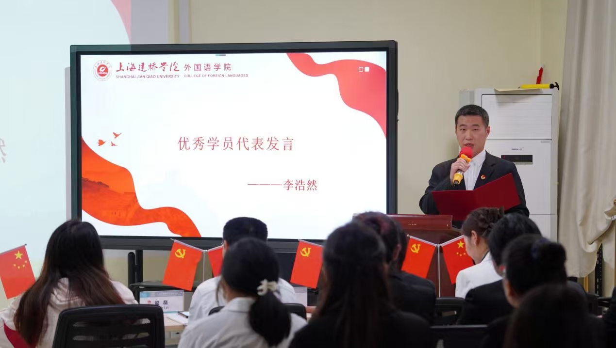 随后,入党积极分子培训班优秀学员代表李浩然分享了自己的深刻感悟和收获。李浩然不仅是入党积极分子也是一名退伍大学生,在党课学习期间,他始终保持着高度的学习热情与专注度。他为在座的学员们分享到通过深入学习党章,了解到了党员的权利和义务,也更加明确了自己作为一名入党积极分子的责任和使命。同时,通过专题课的学习,筑牢了意识形态防线,时刻保持清醒的头脑,感受到了党的伟大历程和光辉业绩,更加坚定了自己为党的伟大事业奋斗终生的理想信念。培训班结束后,他以实际行动践行“全心全意为人民服务”的宗旨,担任了文明修身学导、辅导员助理,积极参加各项志愿服务活动,时刻以党员标准严格要求自己,做到内化于心、外化于行。他激励学员们严于律己,以党章为镜锤炼党性;端正学习态度,掌握学习方法;合理安排专题党课的学习时间,在党课学习的同时牢抓专业课学习。他鼓励学员们积极向党组织靠拢,全心全意投入到党课学习中去,以最实际的行动来迎接此次入党积极分子培训班的考验。