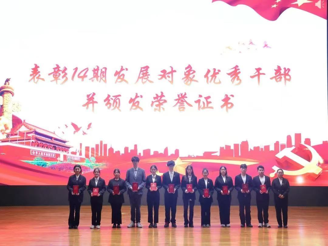 2024118日下午,上海建桥学院第14期发展对象培训班结业典礼暨“立报国强国大志向,做挺膺担当奋斗者”学习汇报演出在大礼堂隆重举行。出席本次活动的有校党委组织部副部长黄晓星老师、校党委组织部专职组织员陈静老师、校党委组织部组织员贾恒老师、校党委组织部组织员、校党校培训班班主任赵君老师、各二级党组织组织委员以及第14期全体发展对象培训班班长和学员。在本次结业典礼与汇报演出中,外国语学院表现出色,荣获佳绩。
