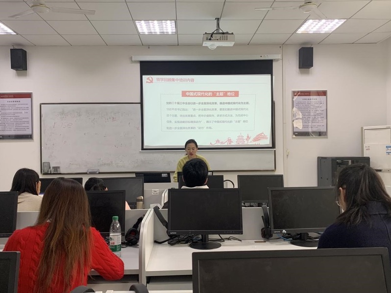 此次会议共为三部分。第一部分为支部副书记侯健慧领学回顾了党员集中培训的课程内容。侯健慧对谢春涛教授以“深入学习贯彻习近平总书记关于全面深化改革的一系列新思想、新观点、新论断和党的二十届三中全会精神”为主题的报告内容从党的二十届三中全会的主题、进一步全面深化改革的战略重点及其重要性和必要性、习近平总书记关于全面深化改革的重要论述及部署未来五年重大改革举措的“五个注重”等方面进行回顾和总结。此外,侯健慧对杨伟人书记对全校党员师生提出三个要求进行回顾,即提高政治站位,践行使命担当;强化组织领导,完善制度建设;坚持守正创新,全面深化改革。