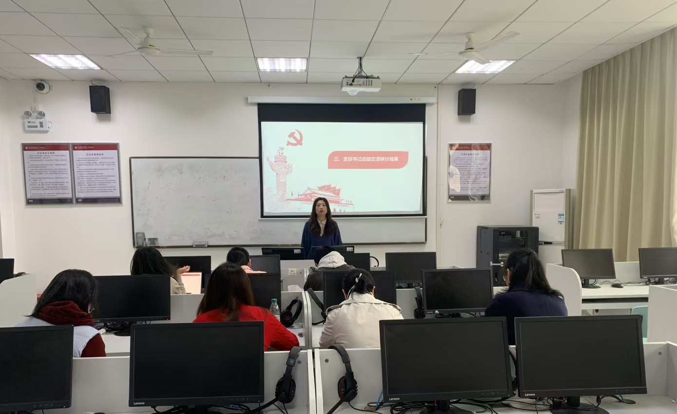 会议第三部分为支部书记周杨对交流研讨成果进行总结。首先,她强调了党员教师应积极参与跨学科教学的探索与实践,在课程设计和教学实施中,主动寻找与其他学科的结合点,推动课程内容和教学方法的创新,以培养具有宽广视野和综合能力的学生。其次,周杨指出,面对人工智能技术的挑战,教师应积极拥抱变革,利用AI技术优化教学过程,提高教学效率,并为学生提供个性化的学习体验。最后,周杨强调了外语教师在“用外语讲好中国故事”方面的重要使命,每一位教师都需要不断加强对中国历史、文化、发展成就等方面的学习,确保在教学中能够有效传播中国文化,增强学生的国家认同感和文化自信。