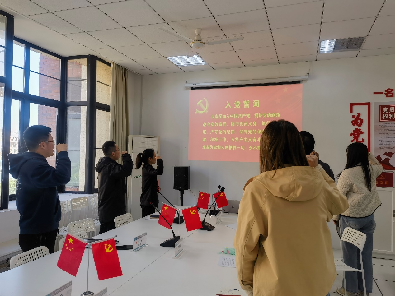 交流研讨会结束后,支部组织委员王林向11月入党的两位党员老师颁发“政治生日”卡并送上生日祝福,在支部书记陆璐的带领下全体党员一起重温了入党誓词,两位党员老师表示将倍感珍惜党员身份,不忘初心、牢记使命,为学校高质量发展贡献力量。