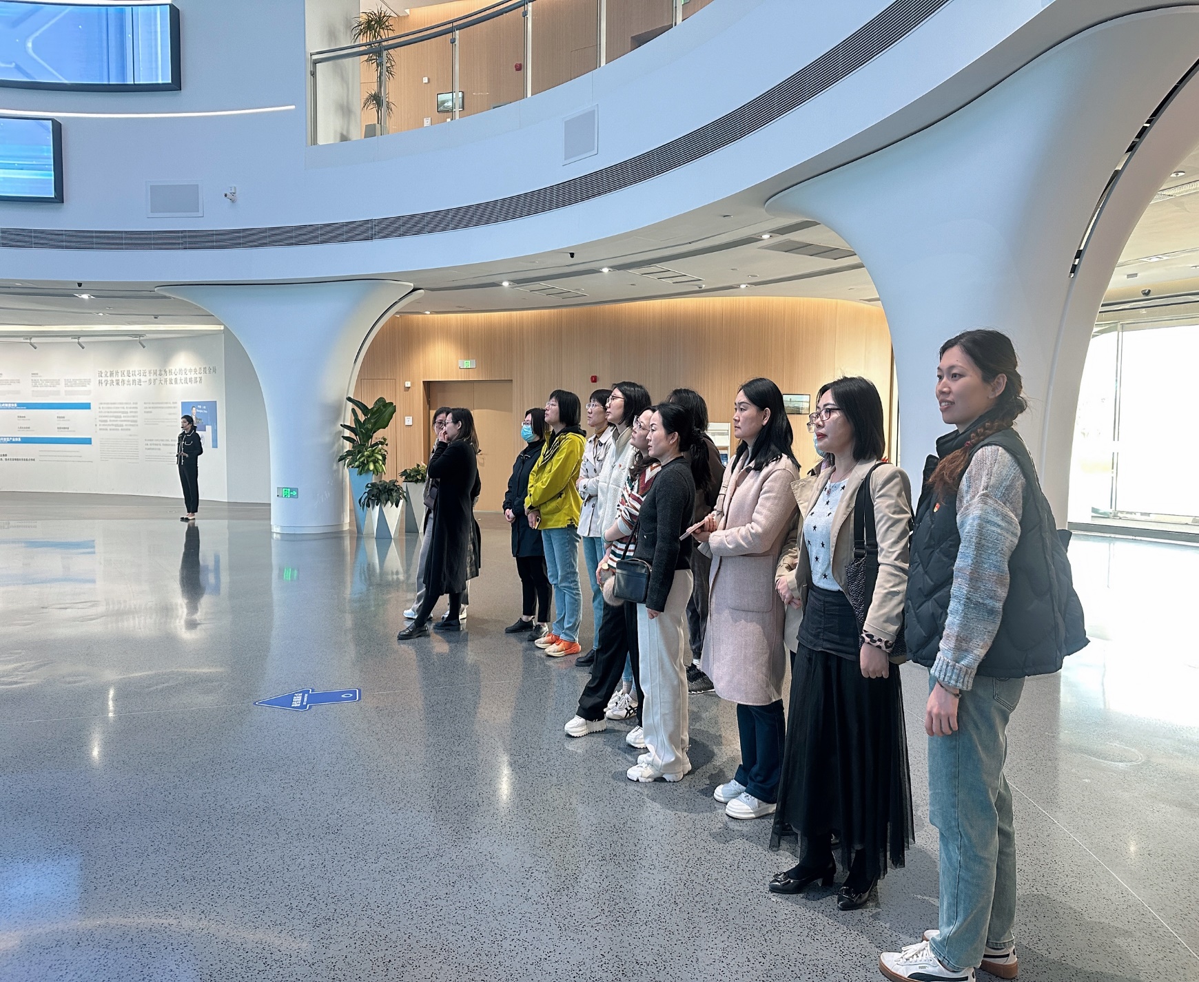 交流结合后,党员教师们一同参观了滴水云厅。在讲解员的详细介绍下,教师们深入了解了临港新片区从规划蓝图到逐步崛起的辉煌历程,深刻领悟到党建引领在区域建设中的关键核心作用。一组组详实的数据、一幅幅宏伟的规划图、一个个振奋人心的发展成果展示,让党员教师们深受触动,也更加坚定了他们将党建精神融入教育教学工作,为临港新片区培养更多高素质国际化人才的决心。