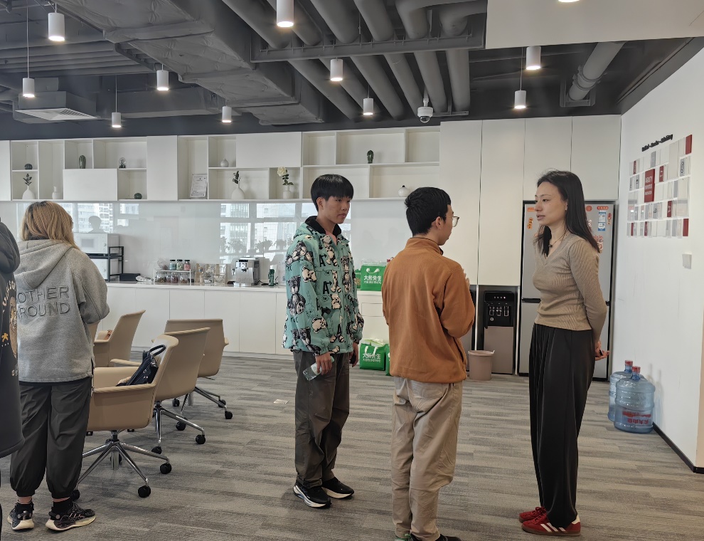 随后,学生们在公司工作人员的引导下,参观了公司的办公环境和员工工位,近距离感受了企业的工作环境和氛围。这一环节不仅让学生们对企业有了更直观的认识,也为他们的职业生涯规划提供了参考。