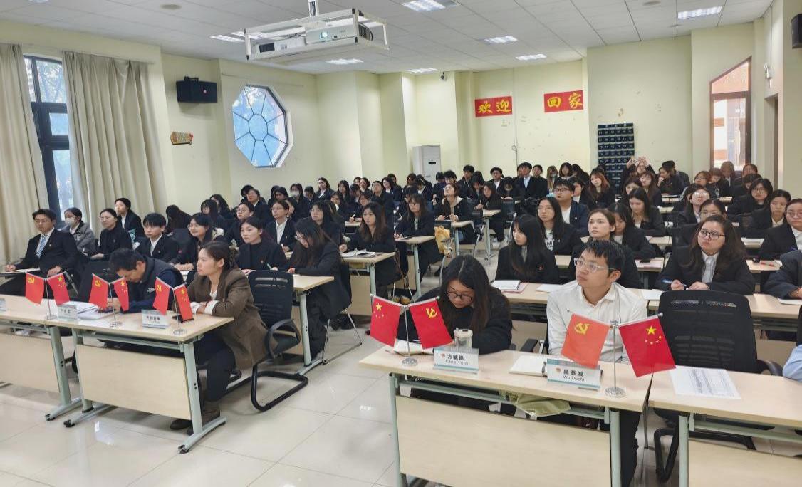 会议开始,杜鹃书记指出本次会议是外国语学院党员基本培训的内容之一,旨在希望学生党员入党积极分子要深入学习贯彻党的二十届三中全会,坚持科学方法,以强烈的责任担当贯彻落实好党的二十届三中全会精神,把理论学习成果转化为推动学习和工作、促进发展的动能。
