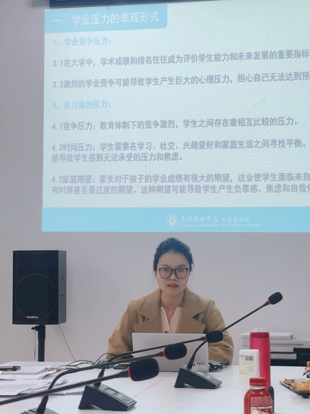 为积响应校第四届“学风节”活动安排,进一步提升学院学工团队面对学生学业压力带来的心理危机事件的识别与应对能力,12月6日在外国语学院303开展“学业压力引发的心理问题及应对策略”辅导员沙龙,本次活动由学院党委副书记伊莉老师主持,全体辅导员参加。