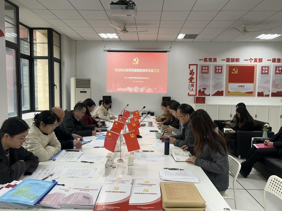 2024年12月4日上午,校党委委员、校办主任徐皓刚,机关党总支书记、人事组织处副处长黄晓星,马克思主义学院党总支书记胡家俊,组织部专职组织员陈静,统战部副部长、纪检办公室副主任潘明芸,组织部干事张梦媛、赵君一行赴外国语学院开展基层党建巡查工作,学院党委委员以及各党支部书记参加本次党建巡查会议,学院党委书记杜鹃主持会议。
