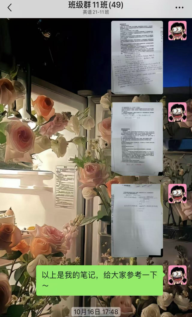 此外,作为班级里的学习委员,她有干一行爱一行,专一行精一行的敬业精神。这是她担任学习委员的第五年了,五年来她坚持不让任何一位同学掉队。无论是课后作业,考前复习,又或是论文写作,只要有需要她都第一时间伸出援手。即使面对部分学习态度不端正而挂科的同学,她也主动提供复习资料,点对点的带领他们掌握重难点,帮助他们通过考试。