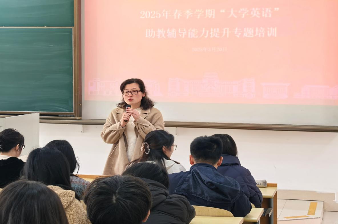 为提升2025年春季学期英语助教“小先生”的教学辅导水平,助力大学英语教学工作高质量发展,外国语学院在校学生处的支持下,于3201300在三教120,组织开展了第5期大学英语助教“小先生”岗前培训。本次培训由大英教师党支部组织委员徐辰老师主持,大英部主任孔辉、大学英语教师党支部书记陈银春、大学英语教师党支部副书记傅荣琳、大英部副主任桂瑞思老师等辅导教师代表,以及来自各学院的英语助教们参加了此次培训。