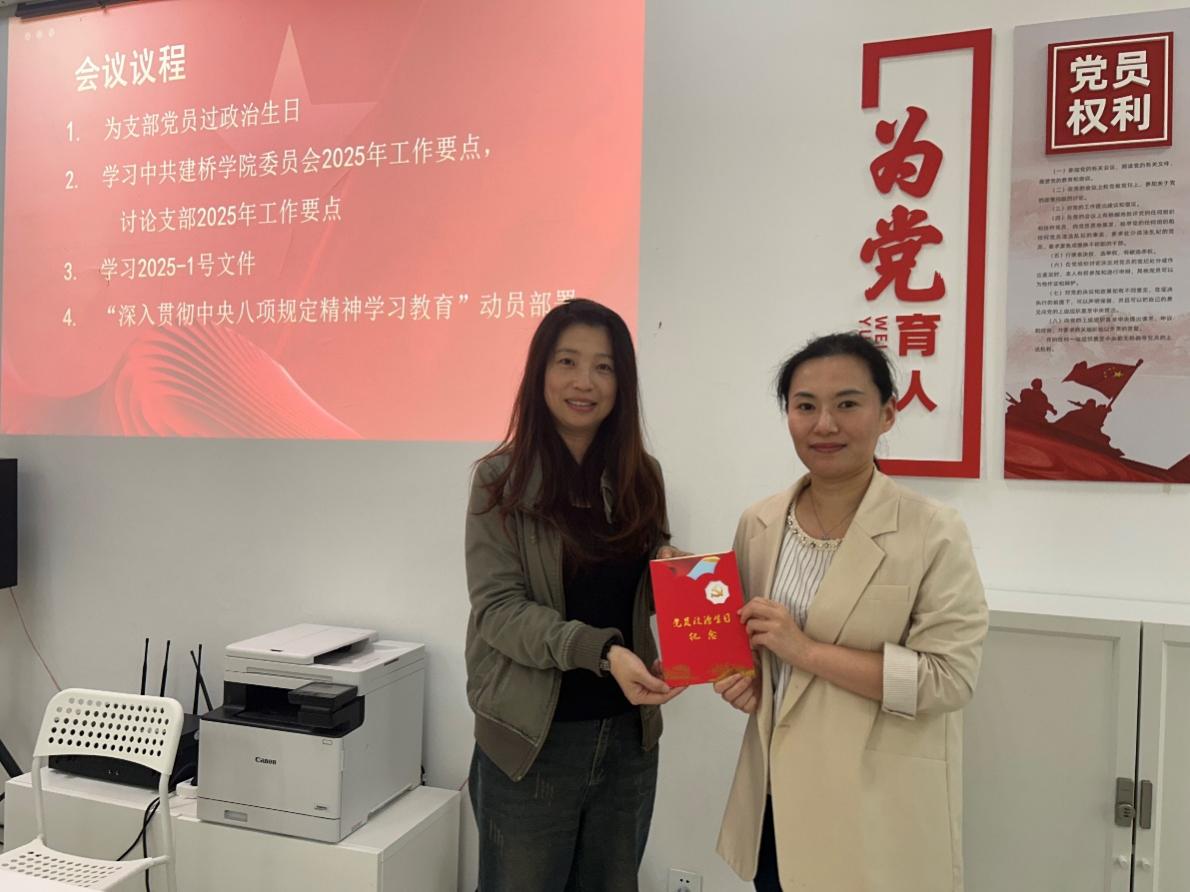 会议第一部分是为支部党员侯健慧过政治生日。周杨书记为侯健慧送上政治生日贺卡,勉励其牢记党员身份,永葆入党初心。侯健慧表示,将时刻以党员标准严格要求自己,以实际行动践行入党誓言。这一环节不仅让侯健慧感受到党组织的温暖和关怀,也让全体党员再次接受党性教育,进一步增强党性修养,强化党员意识。