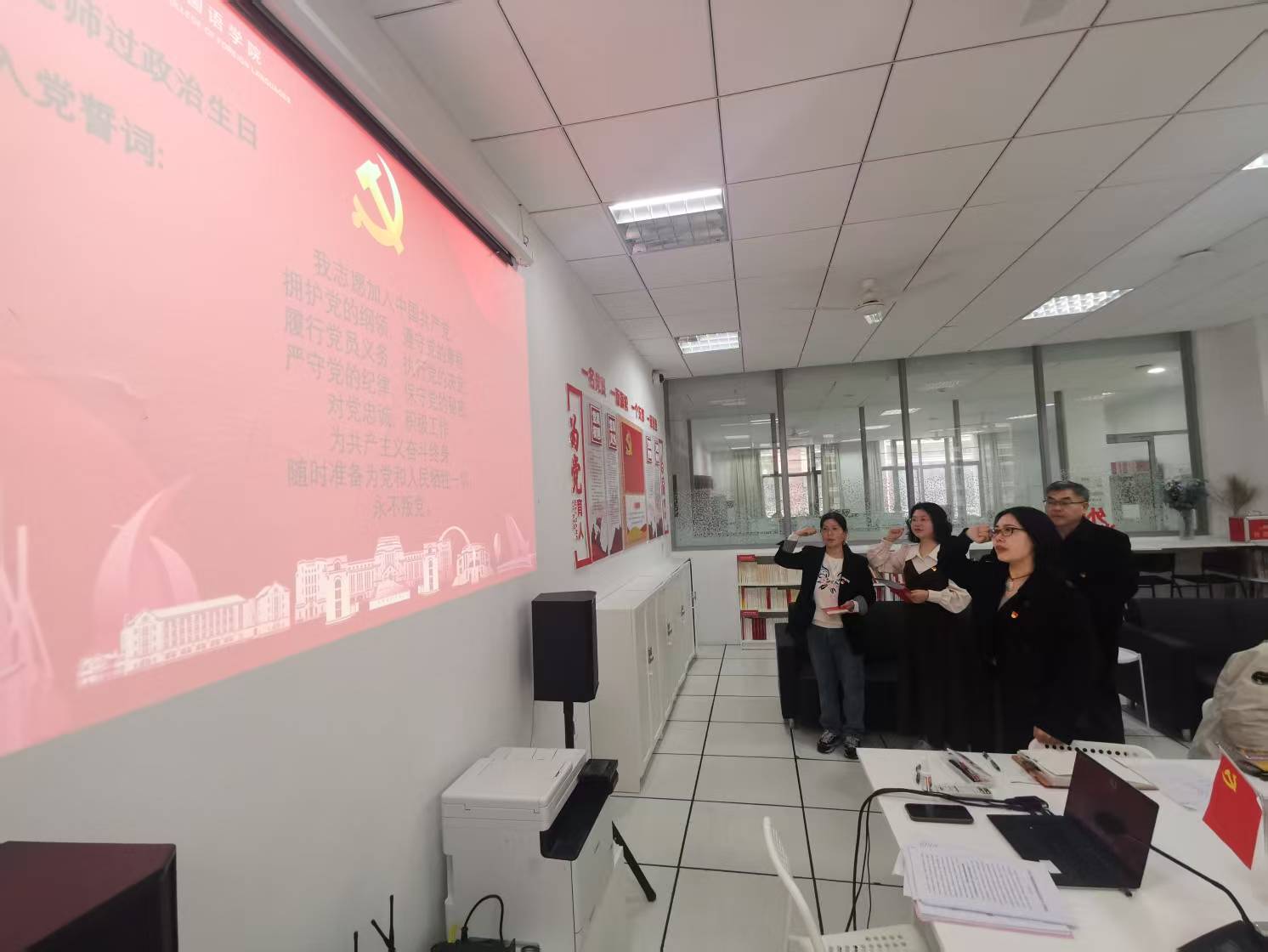 会议伊始,支部全体党员教师为2、3月份入党的3位党员教师举行集体过“政治生日”活动。支部书记陈银春老师向过政治生日的党员教师们致以诚挚的祝贺,并为他们送上了饱含党组织关怀与期望的政治生日贺卡。随后,陈书记带领3位党员老师重温入党誓词。大家纷纷表示,仪式感满满的集体“政治生日”活动,激励着党员教师们牢记党员身份,坚守教育初心。