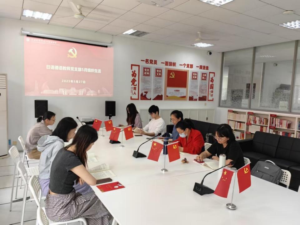 2025527日下午,日语德语教师党支部在外国语学院303党员活动室组织开展了5月组织生活。本次活动聚焦于深入学习贯彻中央八项规定精神,扎实推进教师队伍的作风建设,锤炼党员的党性修养。会议由支部书记周杨主持,支部全体党员参加。