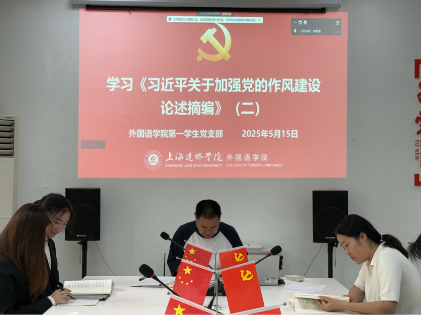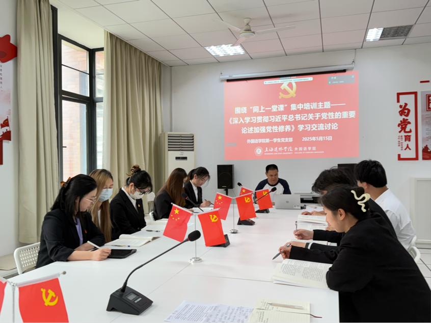 2025515日,外国语学院第一学生党支部围绕学校58日“同上一堂课”集中培训主题,开展《深入学习贯彻习近平总书记关于党性的重要论述,加强党性修养》、以及5月份第二次学习《习近平关于加强党的作风建设论述摘编》学习交流讨论。会议由支部书记赵磊主持,全体党员参加。