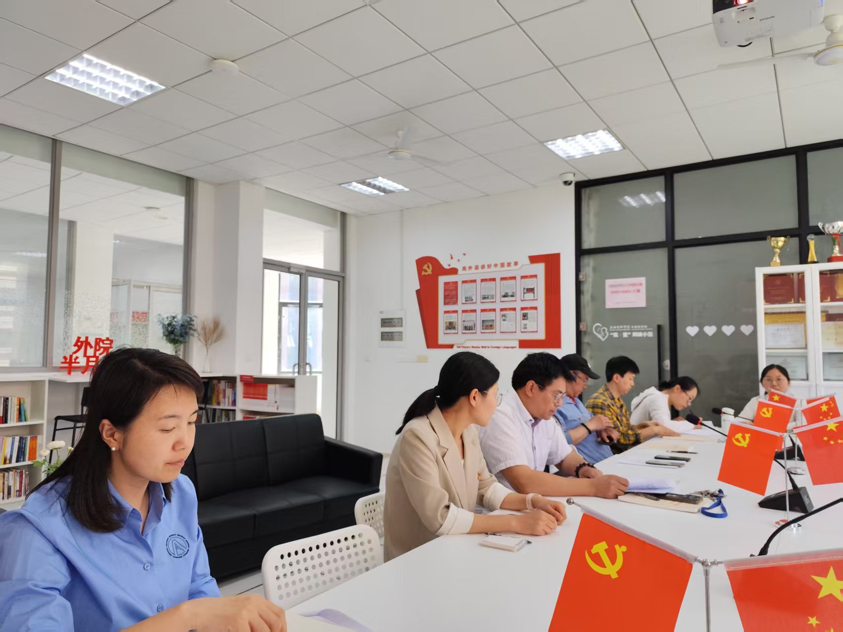 6月5日下午,英语系教师党支部在外国语楼党员活动室303开展“学思想、强作风、建新功”主题党日活动,活动由支部书记王君兰老师主持,支部全体党员参加。