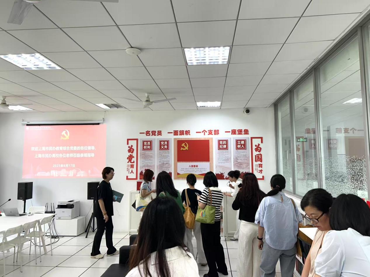 2025年6月17日,上海市教卫工作党委系统“组织员之家”联席会民办片区“学思想,强作风,建新功”主题组织员沙龙在上海建桥学院成功举办。会后,与会人员实地参观了外国语学院党建文化墙和党员活动室,深入了解了学院党建引领发展的创新实践成果。外国语学院院长助理、大英教师党支部孔辉、学院党委委员刘沛雨、董显洋、朱心怡、傅荣琳、陶然等参与接待。