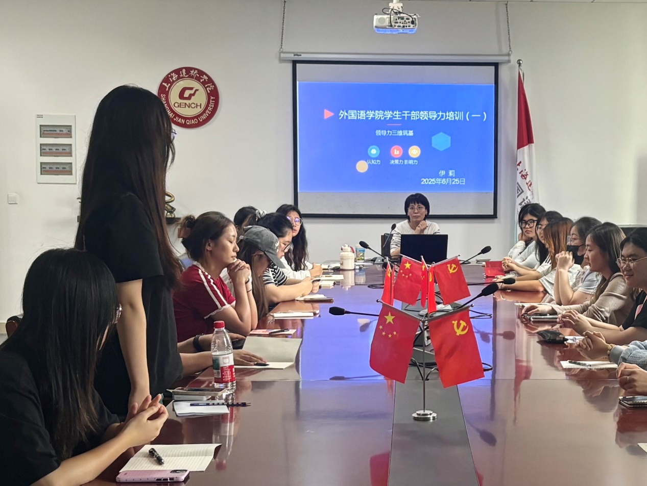2025625,上海建桥学院外国语学院大学生骨干领导力培训会议在外院229顺利举行。本次培训旨在提升学生骨干领导能力,为学院学生工作高质量发展注入新动能。会议由学院党委副书记伊莉老师主讲,外国语学院分团委书记祖晴晴老师以及学院各学生骨干代表积极参与。