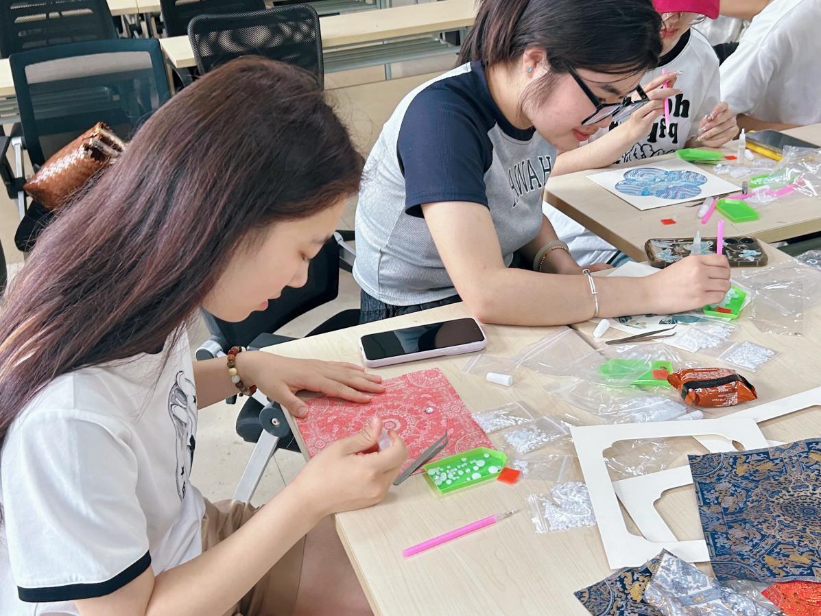 为促进非物质文化遗产传承与高校第二课堂美育文化融合,学院开展了非遗美育课堂“宋锦珍珠”活动,通过文化讲解与手工实践相结合的方式,带领外院校友们探寻千年宋锦文明的时代新韵。朱心怡老师为大家深入浅出地讲解了宋锦的历史渊源、织造技艺及文化内涵,活动现场师生共聚一堂,一同感受飞针走线勾勒出珍珠般莹润纹样。每一位校友都专注记录着丝线经纬间的文化密码,深刻体悟每道工序承载的匠心传承。年轻校友表示,这场活动是技艺传承,更是文化觉醒。作为外语人,要学好外国语,讲好中国故事,传播中国优秀传统文化美学。