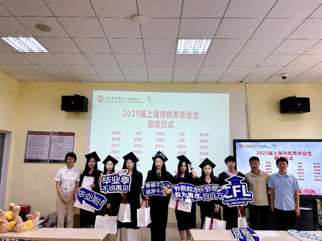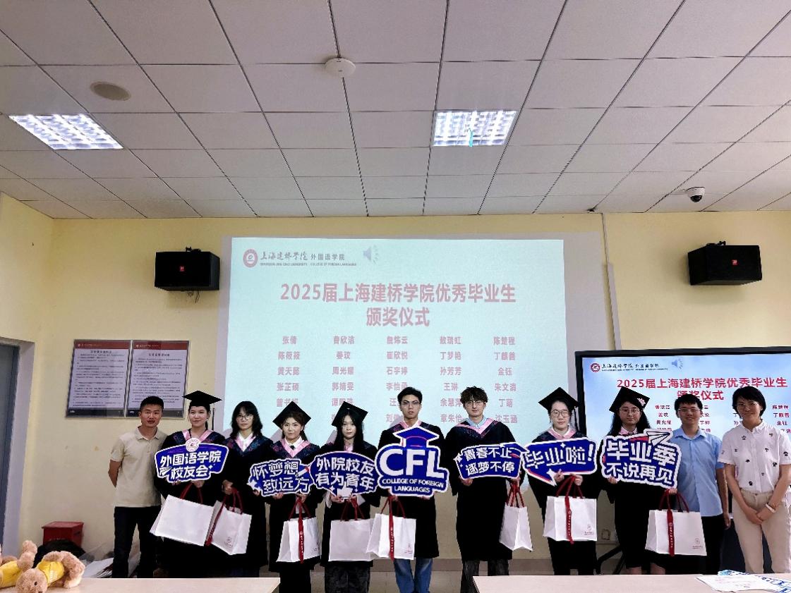 随后,党委副书记伊莉老师宣读了2025届市校优秀毕业生代表名单,并为他们颁发荣誉证书,她表示,希望外院优秀毕业生代表们在追梦路上牢记建桥校训,树立远大目标,锤炼高尚品格,奋斗精彩人生,成长为具备扎实外语能力与国际视野的专业人才。