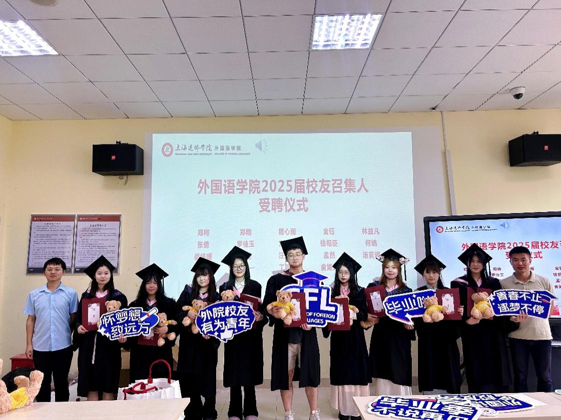 为有效地保持我院与校友间的沟通与联系,更好地凝聚和发挥优秀校友力量,6月20日中午,我院在学院129会议室举行了校友召集人受聘仪式与市校优秀毕业生颁奖仪式活动,外国语学院校友会秘书长朱心怡老师主持,外国语学院党委副书记伊莉老师,全体毕业班辅导员老师与学院25届毕业生代表们参加了此次仪式活动。