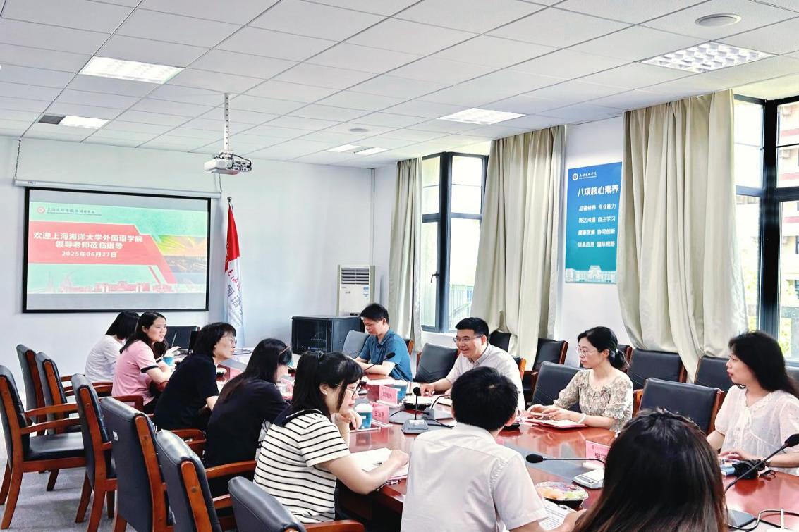 2025627日上午,上海海洋大学外国语学院学工团队来访我院,双方围绕学生工作与外语专业人才培养在229会议室开展交流研讨。上海海洋大学外国语学院党委副书记刘海为、学工办公室主任胡娜、团委书记徐基衡、副书记樊瑛婕、辅导员程志生,我院副院长王海燕、党委副书记伊莉、分团委书记祖晴晴及全体辅导员参加了此次研讨。