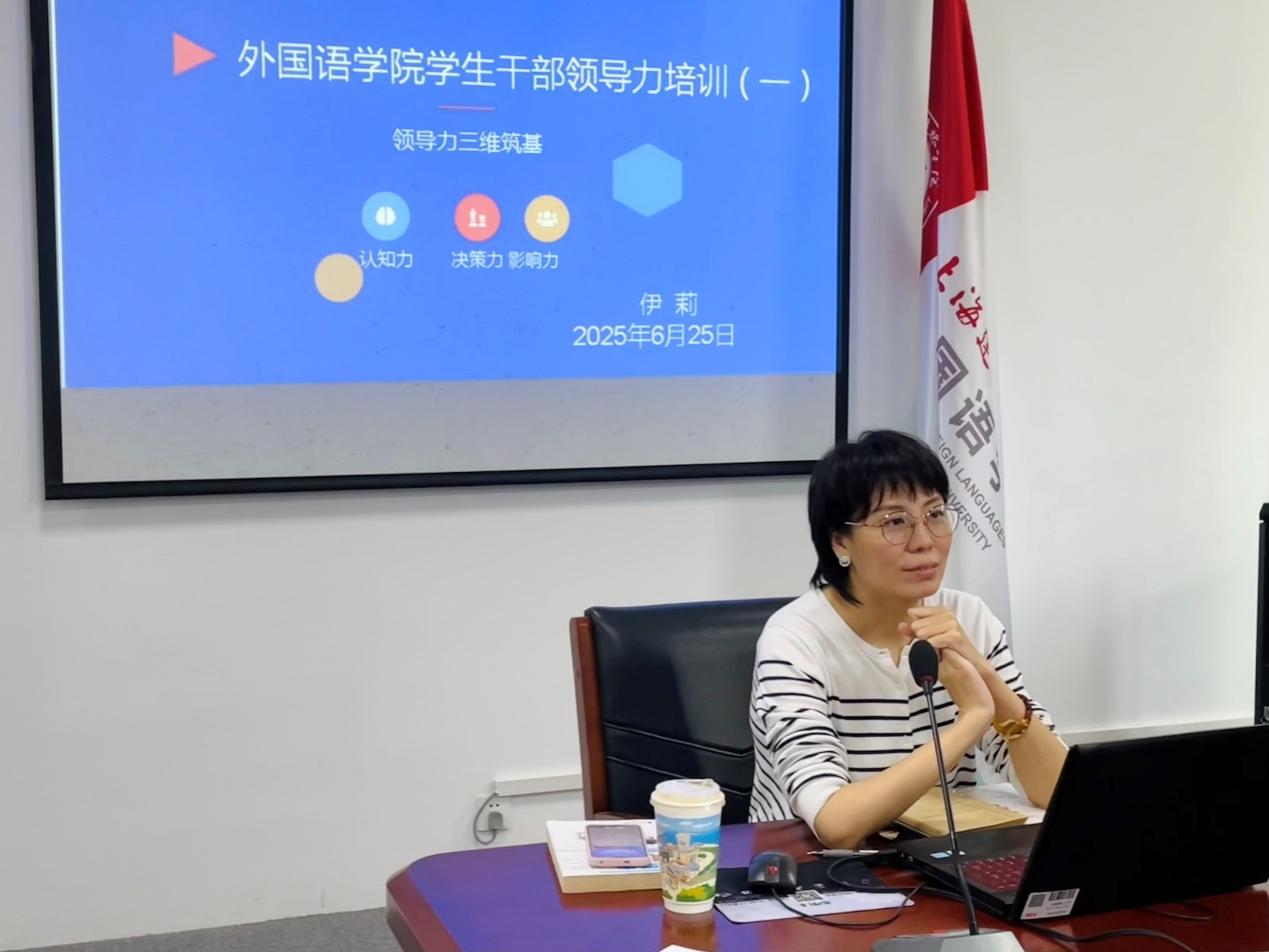 2025年6月25日,上海建桥学院外国语学院大学生骨干领导力培训会议在外院229顺利举行。本次培训旨在提升学生骨干的领导能力,为学院学生工作高质量发展注入新动能。会议由学院党委副书记伊莉老师主讲,外国语学院分团委书记祖晴晴老师以及学院各学生骨干代表积极参与。
