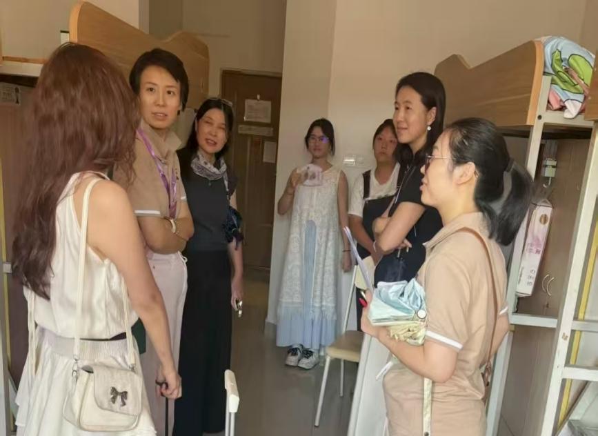 95日杜鹃书记,王海燕副院长,伊莉副书记,分团委祖晴晴书记,辅导员张三月老师一同前往学生宿舍看望新生,领导们与新生亲切交谈,细致询问入校感受,并耐心答疑解惑,送上学院的温暖与关怀。