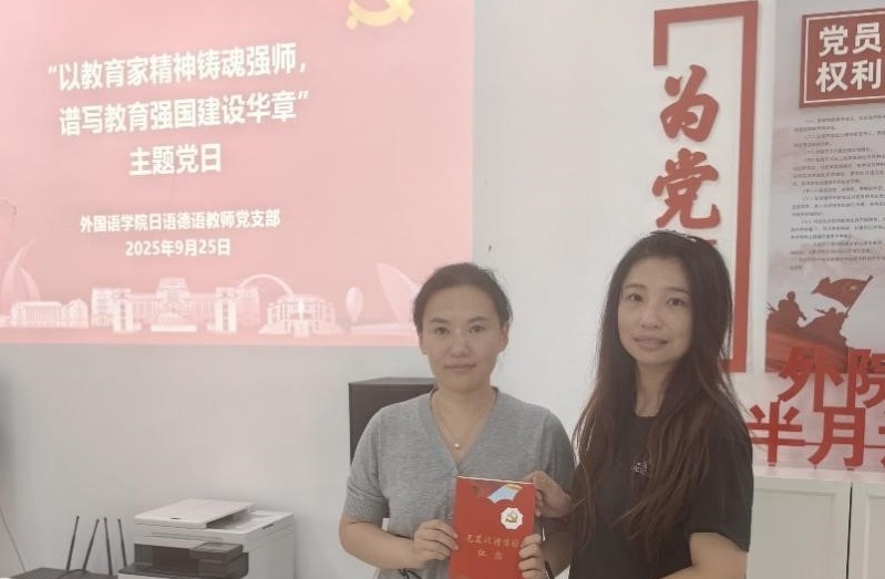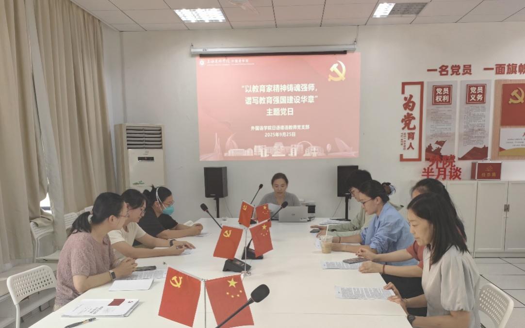 为深入学习贯彻习近平总书记关于教育的重要论述,大力弘扬教育家精神,切实加强教师队伍建设,外国语学院日语德语教师党支部于9月25日下午2点半在外国语学院303党员活动室召开了9月组织生活暨“以教育家精神铸魂强师,谱写教育强国建设华章”主题党日活动。本次活动是上海建桥学院第四届师德师风建设月的一部分,旨在引导全体教师党员深刻把握教育家精神的时代内涵,激发为党育人、为国育才的强大动力。活动由党支部书记周杨主持,支部全体党员参与本次活动。