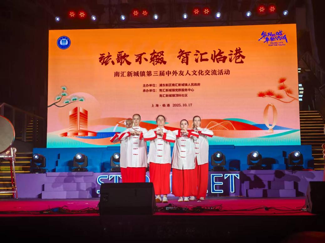 2025年10月17日晚,由南汇新城镇顶科社区管理中心主办的“第三届中外友人文化交流活动”在港城新天地二期广场隆重举行,秋意渐浓,临港新片区的夜晚却因文化的碰撞而格外火热。受主办方邀请,外语与国际教育学院组织了五名俄罗斯籍国际学生积极参与本次盛会,与临港社区以及其他学校的中外学生齐聚一堂,共同谱写了一曲中外文化交流的动人乐章。