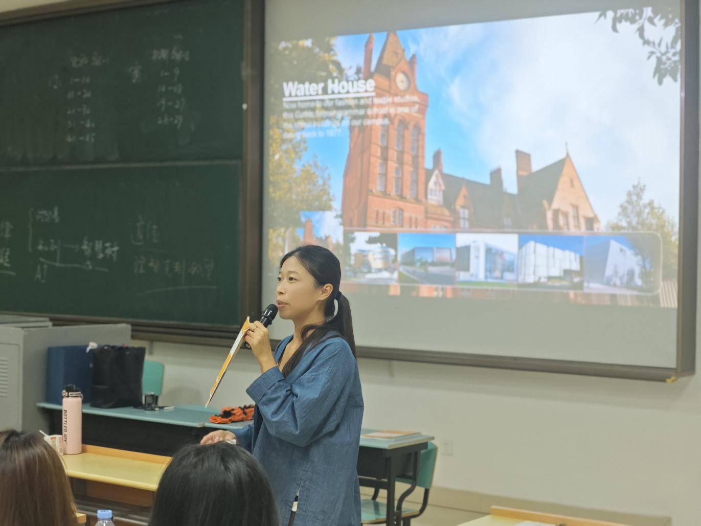 2025年9月24日,外语与国际教育学院在三教120教室为 2023 级数字媒体技术(双语班)的 82 名学生举办了一场针对性极强的中英项目留学动员宣讲会。本次宣讲由英国提赛德大学中国办公室王梦思老师主讲,旨在为即将于 2026 年 9 月赴英留学的同学们答疑解惑,助力大家做好留学前的各项准备。