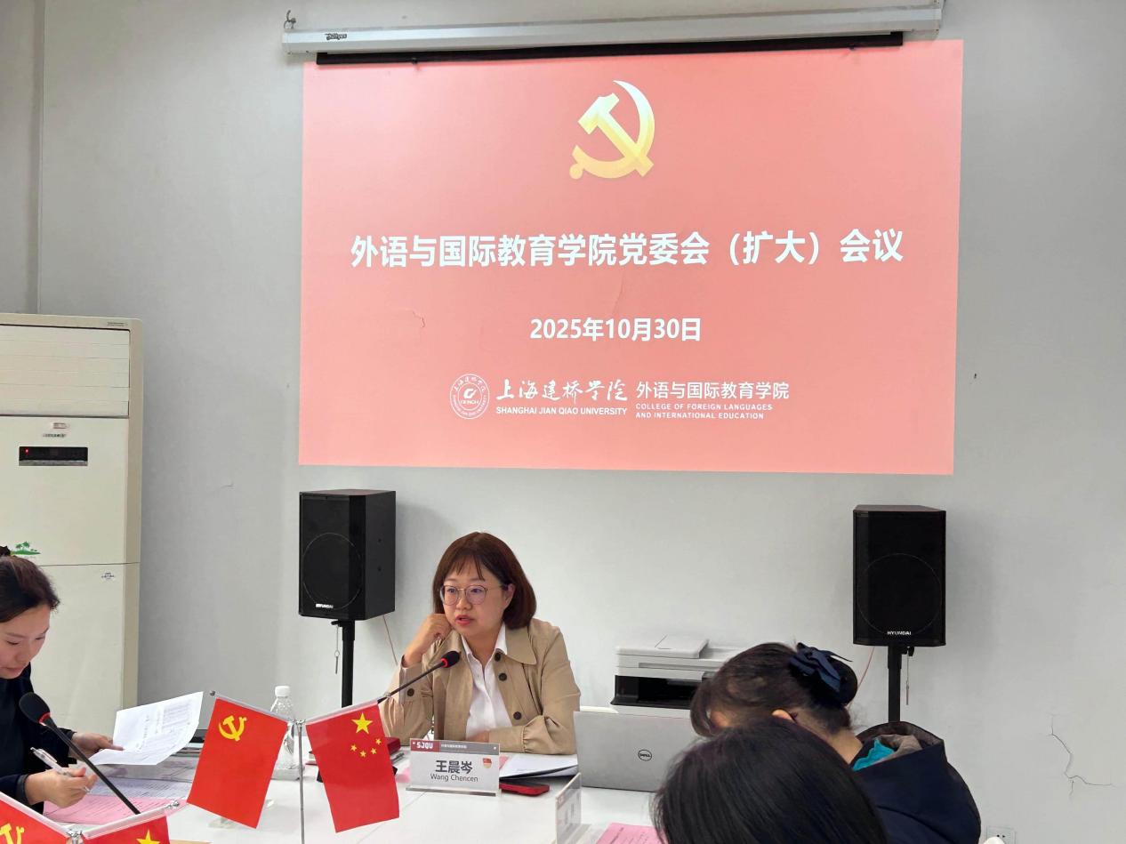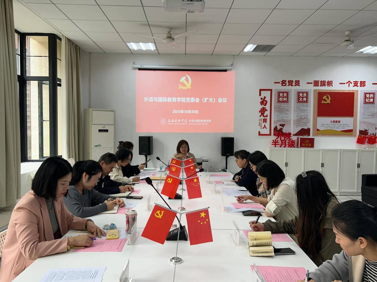 2025年10月30日,外语与国际教育学院在学院楼303会议室召开首次党委会(扩大)会议。会议聚焦传达学习上级重要精神、研究学院招生就业、党员发展及新一届党委委员选举等关键议题,党委副书记徐伟、党委组织委员刘沛雨和学院党支部书记参加了本次会议,会议由学院党委书记王晨岑主持。