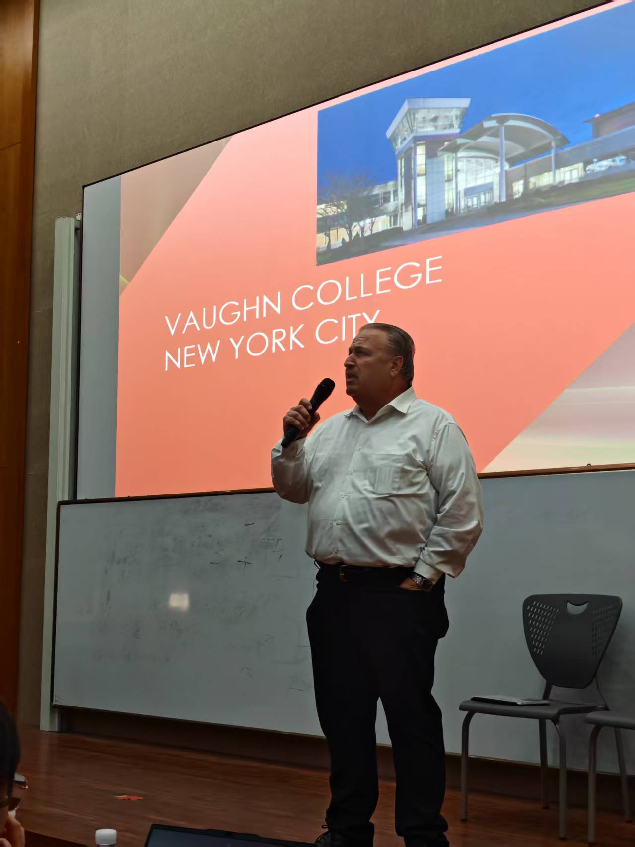 活动伊始,Domenic副校长以生动的语言和详实的数据,全面介绍了美国沃恩航空科技大学的悠久历史、专业特色以及雄厚师资力量。该校在航空科技及管理领域深耕多年,汇聚了一批顶尖的专家学者,他们不仅在学术研究上成果斐然,更在教学实践中积累了丰富的经验。在谈到学生就业前景时,Domenic副校长指出,随着全球航空业的快速发展,对专业人才的需求日益增长,沃恩中美项目的毕业生凭借扎实的专业知识和出色的实践能力,在就业市场上备受青睐,拥有广阔的发展机遇。同时Domenic副校长还就学生关于海外学习课程和实践场地等问题进行了详细的解答,确保同学们对中美项目的教学质量和学术资源以及海外实习机会有充分的了解,能够更好地规划未来的学业和个人发展。
