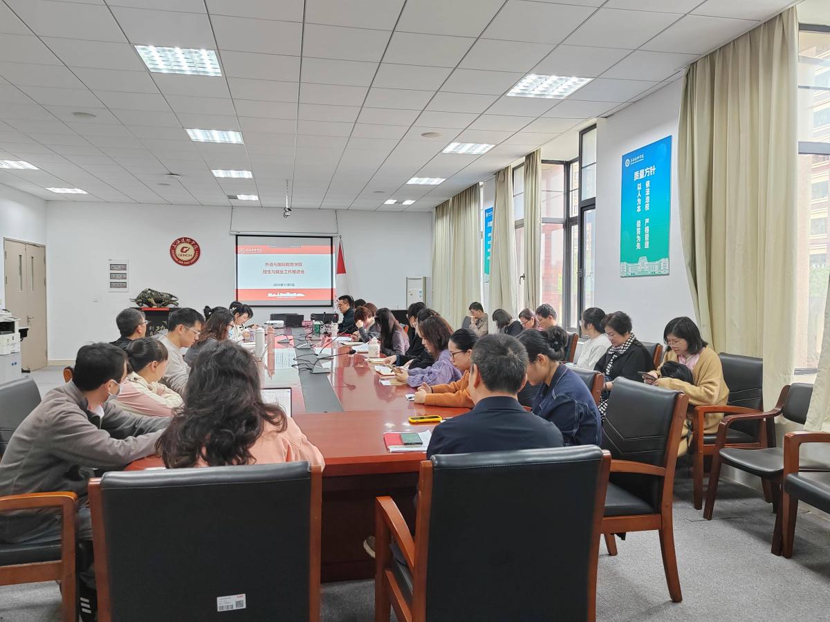 10月23日上午,外语与国际教育学院在学院在229会议室召开学院招生就业工作推进会。学院党政领导班子、各系部主任及项目主任和2026届毕业班全体辅导员参加了会议,会议由党委副书记徐伟主持。