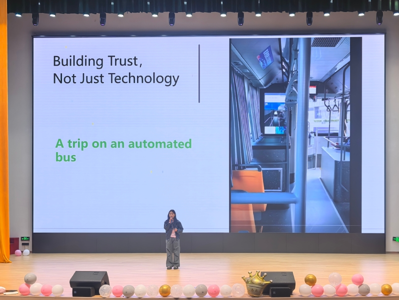 紧接着一段由外籍留学生表演的太极拳拉开了比赛的帷幕。15位选手围绕“AI中国”与临港发展,各抒己见、亮点纷呈。部分选手结合临港城市蜕变,以智能基建、无人公交等实例,阐述AI对城市治理与民生服务的赋能作用;另有选手立足专业背景,提出“数字金融为产业价值解码”、“AI效率需融合人文深度”的见解,清晰呈现数字技术与不同领域的融合路径;还有选手聚焦青年担当,明确表达以“专业能力+数字素养”助力临港建设、讲好中国现代化故事的志向。同时,选手们亦深挖科技与人文的内在联结,一方面借AI活化传统文化的案例,展现技术为古老文明注入的新生机;另一方面通过智能科技与生态保护的对照,诠释中国式现代化的发展理念,传递出“AI是人类赋能工具”的核心观点,使科技温度与创新力量贯穿全场。