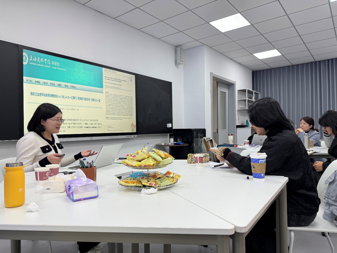 11月21日下午,上海建桥学院科研处主办的“智享工坊”科研分享活动在教发中心102成功举行。本次专场由外语与国际教育学院承办,采取线上线下同步开放的形式,吸引了约20位来自学院及跨学院的教师参与,营造了开放、交流、共享的科研氛围。