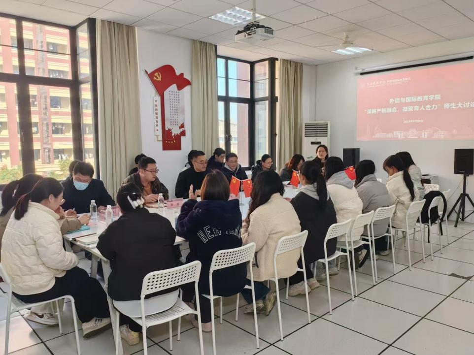 为深化产教融合协同育人机制,精准对接师生诉求,12月4日下午,外语与国际教育学院在学院303会议室召开“深耕产教融合,凝聚育人合力”师生大讨论。学院党委副书记徐伟、学生处处长助理刘雍鹤、教务处杨帆、各系教师、辅导员及学生代表齐聚一堂,共话教学改革与人才培养,会议由孟娣主持。