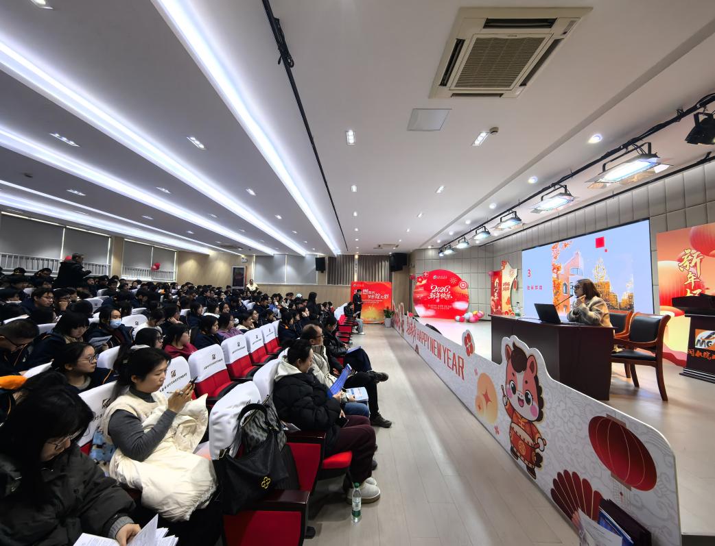 随后,上海建桥学院招生办副主任郑俞欠围绕上海市春季高考政策及上海建桥学院春季招生相关情况进行了重点解读。郑主任从上海市春考的政策背景、考试特点、报考流程和志愿填报注意事项等方面展开讲解,帮助同学们厘清春考与秋考的区别与联系。同时,她结合学校春季招生的专业设置和培养特色,详细介绍了上海建桥学院在人才培养模式、实践教学体系以及就业发展支持等方面的优势,引导同学们结合自身兴趣、成绩和发展规划,理性选择升学路径,科学进行志愿填报。